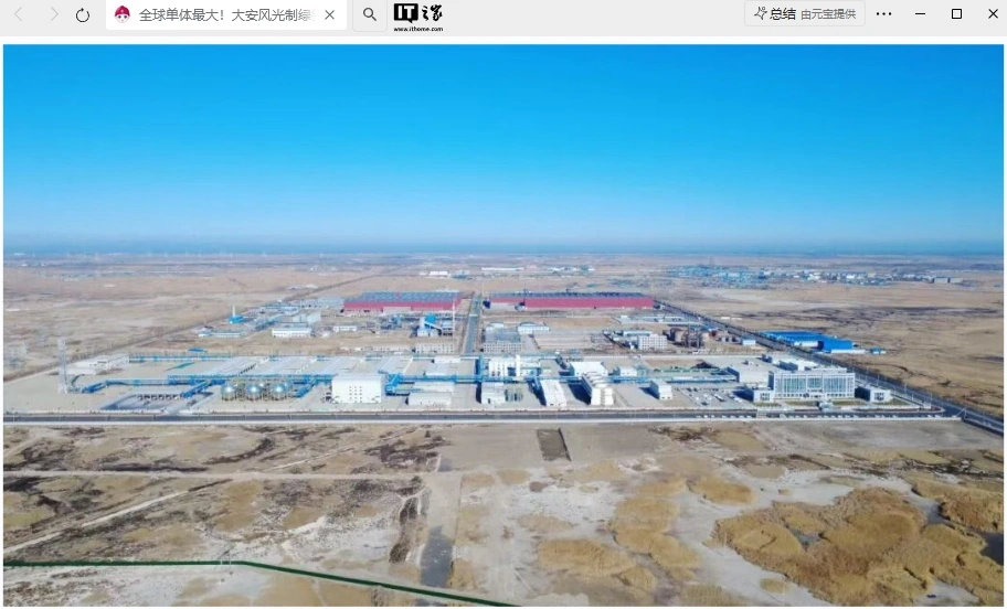 IT之家 11 月 10 日消息魔投网,中国电建(601669)官方今日宣布:其参与设计、建设的全球单体最大绿氨装置 —— 大安风光制绿氢合成氨一体化示范项目配套 700 兆瓦风电项目全容量并网发电。